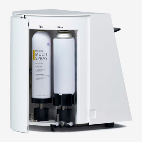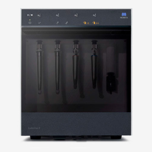 Lubrina 2 realiza automáticamente el mantenimiento (lubricación y limpieza) de las piezas de mano y otros equipos esenciales para la práctica diaria. Gracias a que la cantidad de lubricante y el tiempo de servicio adecuados para cada pieza de mano están programados en Lubrina 2, puede realizar automáticamente el mantenimiento de hasta cuatro piezas de mano en poco tiempo. El sistema de soplado de aire limpio realiza una lubricación y limpieza exhaustivas del interior de la pieza de mano, proporcionando un mantenimiento estable sin las variaciones que pueden producirse durante la lubricación manual. Lubrina 2 admite múltiples marcas de lubricantes en aerosol.