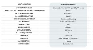 Fuente de luz LED de grado médico con una temperatura de color de 5000 K y un IRC >90, que garantiza una reproducción de color realista. El punto de luz es claro y uniforme, con brillo ajustable. Diseño ergonómico para un uso cómodo, ligero y portátil. La visión binocular del médico y la iluminación son prácticamente coaxiales, iluminando el área de visión exacta, logrando una iluminación profunda y sin obstrucciones a lo largo del eje visual. Batería de litio recargable inteligente, de doble uso (CA/CC), con protección de carga integrada. La batería puede soportar hasta 500 ciclos sin una degradación de energía apreciable. Bombilla LED con una vida útil ultralarga de 20 000 horas, que supera con creces la vida útil de las fuentes de luz halógenas y de xenón médicas tradicionales. Filtro amarillo que reduce eficazmente la luz azul, previniendo la fotopolimerización en procedimientos dentales.